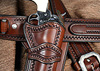 Hello, thank you for your interest in my custom western gunleather and western gun holsters for cowboy action shooting. Please understand, the effort and exquisite quality of old world saddlery and harness work I use to create these Western Gun Leather Rigs should not be confused with lesser quality, fast-production type of work. Few leathersmiths/makers still use this type of craftsmanship because it is labor intensive and requires a geat deal of skill. After I am dead, I want someone who sees my western gun belts and western gun holsters to say, "after all these years this rig still looks beautiful... who made this gun leather?" Troy Harp-Brigade GunLeather. I hope the photos illustrate the quality you will receive. Please feel free to call me with any questions you have. |