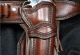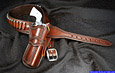 Hello, thank you for your interest in my custom western gunleather and western gun holsters for cowboy action shooting. Please understand, the effort and exquisite quality of old world saddlery and harness work I use to create these Western Gun Leather Rigs should not be confused with lesser quality, fast-production type of work. Few leathersmiths/makers still use this type of craftsmanship because it is labor intensive and requires a geat deal of skill. After I am dead, I want someone who sees my western gun belts and western gun holsters to say, "after all these years this rig still looks beautiful... who made this gun leather?" Troy Harp-Brigade GunLeather. I hope the photos illustrate the quality you will receive. Please feel free to call me with any questions you have. |