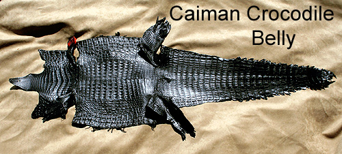Below are photos of some of the exotic skins we work with most often. The prices reflected in our holster using exotic skins is based mainly on three things. Price of skin, availability and difficulty to work with. Difficulty to work with is a big factor. An example of this comes when working with Alligator or Crocodile, is very labor intensive, if it is done professionally. Blending the edges of crocodile into the leather holster for a professionally look is very time consuming and artistic but necessary if you want a high quality professionally look. We don't just glue and stitch them quick and cheaply.